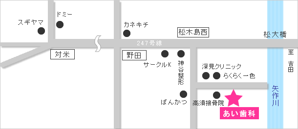 アクセス 西尾市一色町 無料駐車場完備 あい歯科NISHIO 〒444-0403 愛知県西尾市一色町松木島丸山41-4TEL:0563-74-2828 ▲受付は診療終了時間の30分前までです ※保険外診療のみカード払いできます